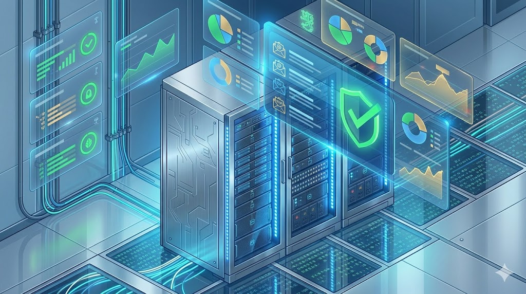 - Valvonta: Hälytykset prosessorikuormasta, muistin käytöstä ja levytilasta.